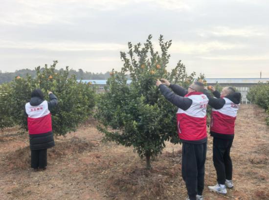 图为新建烟草志愿者帮助果农采摘蜜桔,曾旺春摄